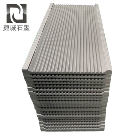 石墨舟皿,它包括若干條具有相對(duì)的兩槽面和底部支撐凸起的W型雙向斜槽、底面、上端面、內(nèi)側(cè)面、外側(cè)面和與上端面相對(duì)的止口,相對(duì)的兩槽面上分別設(shè)計(jì)有至少一條排氣通槽,底部支撐凸起與相對(duì)的兩槽面的相交處分別設(shè)計(jì)有一條棱角保護(hù)槽。底面在任兩個(gè)相鄰的W型雙向斜槽形成的突出部的下部設(shè)計(jì)有平行于W型雙向斜槽、截面形狀為近似Λ形的通槽。本實(shí)用新型使硬質(zhì)合金長(zhǎng)條薄片產(chǎn)品在氫氣脫膠和真空燒結(jié)過(guò)程中均勻脫膠,避免產(chǎn)品翹曲變形的并且產(chǎn)品裝載量大且耗材少。